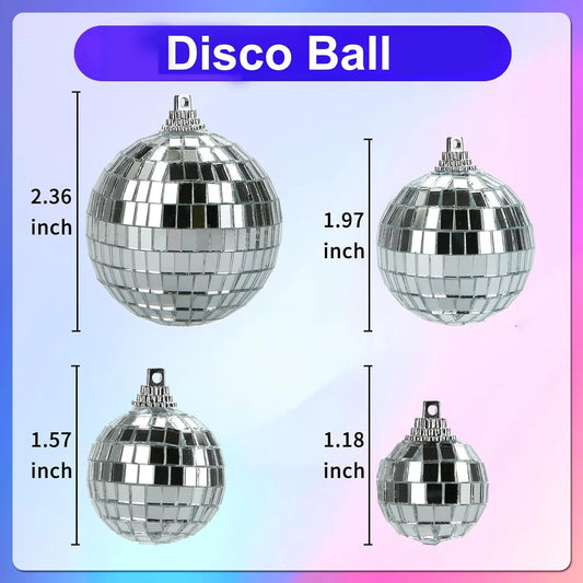 24 Pcs Hanging Mirror Disco Ball Glass Disco Ball Silver Mini Disco Ball Reflective Disco Ball, Disco Party Supplies, Christmas Tree Decorations (1.2Inch, 1.57Inch)