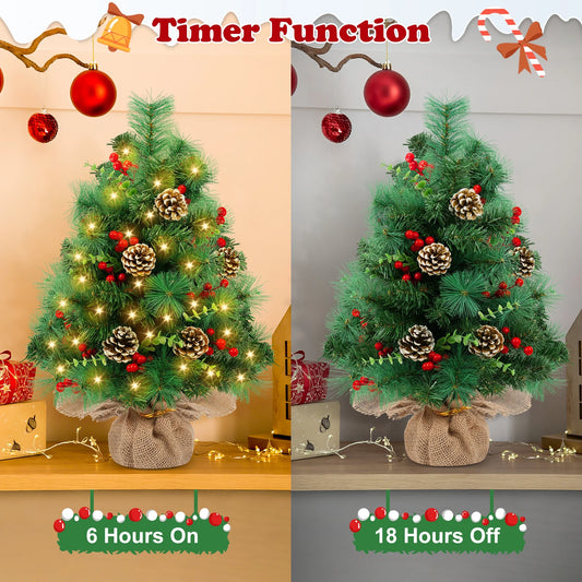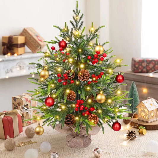2PCS Pre-Lit Artificial Mini Christmas Tree,30 Inch Small Tabletop Christmas Tree for Indoor Outdoor Christmas Decor