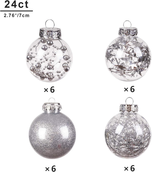 24 Pcs Christmas Decorations Ornaments, 4 Styles Sliver Christmas Tree Balls, 2.76 Inches Shatterproof Ornaments Set for Outdoor Indoor Holiday Wedding Party