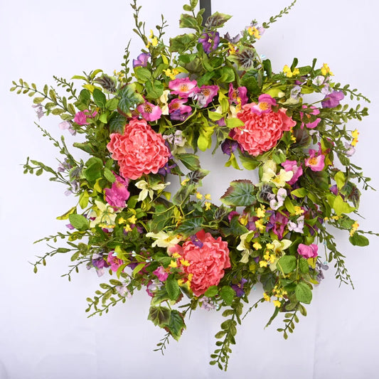 26" Handcrafted Faux Peony Morning Glory Silk Wreath for Front Door