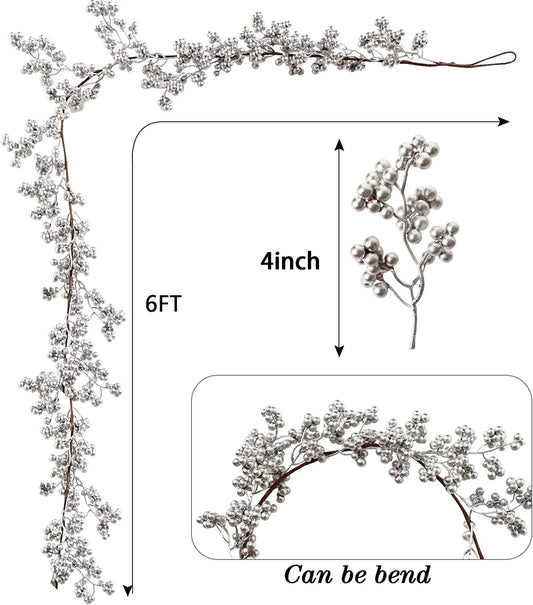 5.9Ft Silver Berry Christmas Garland with Light Artificial Garland for Indoor Mantle Staircase Home Christmas Decoration