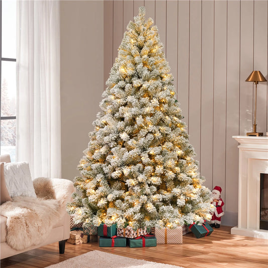 7.5Ft Pre-Lit Snow-Flocked Slim Douglas Fir Artificial Christmas Tree with Realistic Branches, 350 LED Lights and 641 Tips