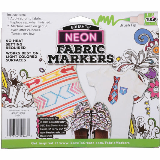 Brush Tip Fabric Markers 10-Pack – Neon Permanent Assorted Colors for DIY Crafts, Clothing & Fabric Art