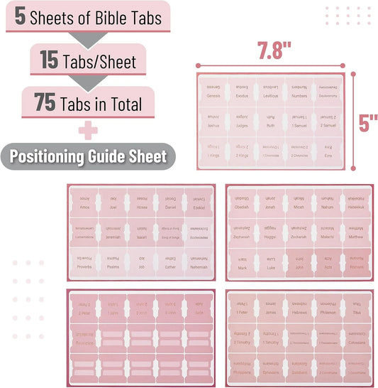 Bible Tabs, 75 Tabs, Pink Shades, Laminated Bible Tabs for Women and Men